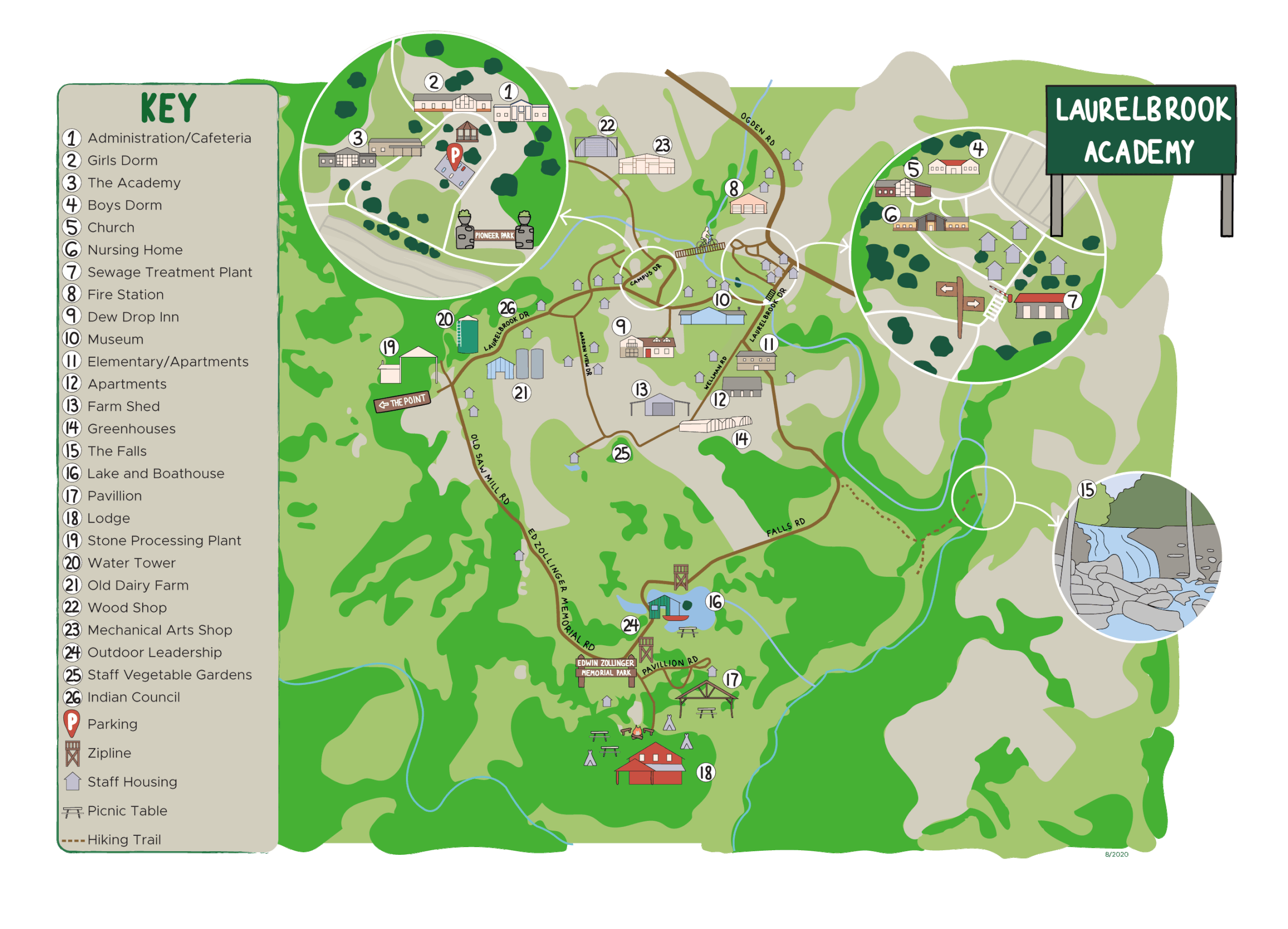 Laurelbrook Academy is set on 1,700 acres on top of Walden's Ridge in Eastern Tennessee. Hidden away in our forests are trickling waterfalls, secluded hiking trails, breathtaking clifftop vistas, and flourishing gardens. Our small farm and greenhouses produce potatoes, lettuce, greens, corn, sweet tomatoes, and even sweeter strawberries for the whole campus to enjoy.